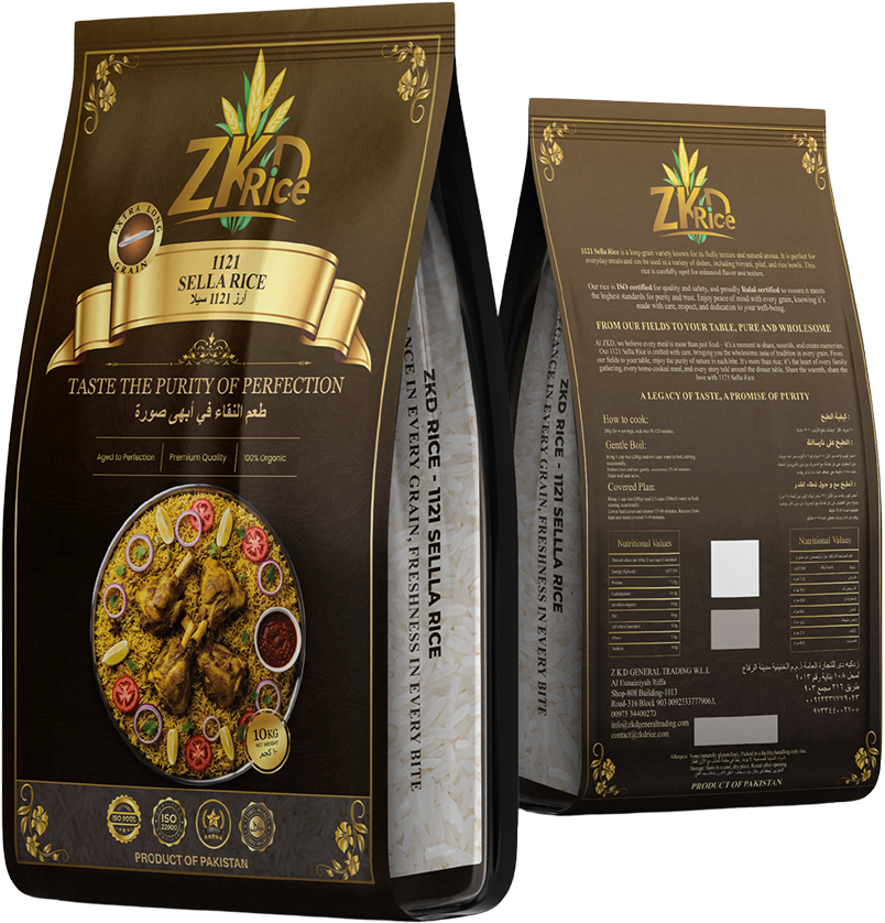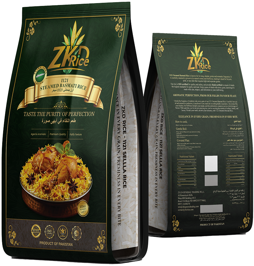 ZKD General Trading supplies rice products, including 1121 Steamed Basmati Rice and 1121 Sella Rice, for household and foodservice use.